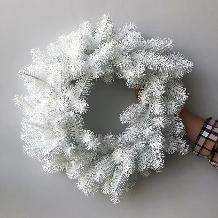 Вінок новорічний різдвяний Premium з литої хвої діаметром 55 см у білому кольорі - ідеальне рішення для створення святкового настрою в будинку чи офісі. Цей вінок виготовлений з якісної литої хвої, що забезпечує йому довговічність і красивий вигляд.