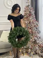 Новорічний декоративний вінок діаметром 60 см являє собою переплетені гілки штучної ялинки. Виготовлений з 100% литої хвої. Голочки як у живої зеленої ялинки, але м'які і не колючі. Вінок без декору.