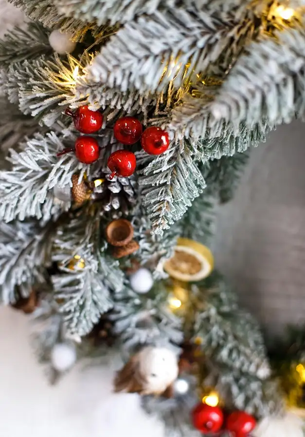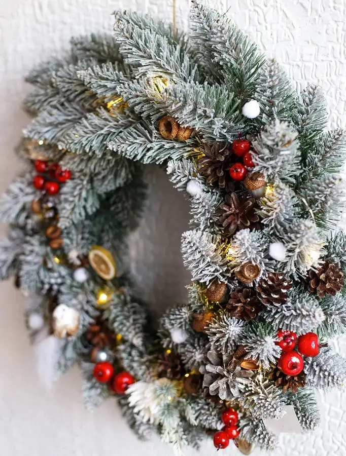Цей вінок виготовлений з високоякісної штучної хвої, яка надає йому натуральний вигляд. Засніжений додає особливого шарму та створює атмосферу зимового свята. Ідеально підійде для прикраси вашого дому чи офісу на новорічно-різдвяні свята.