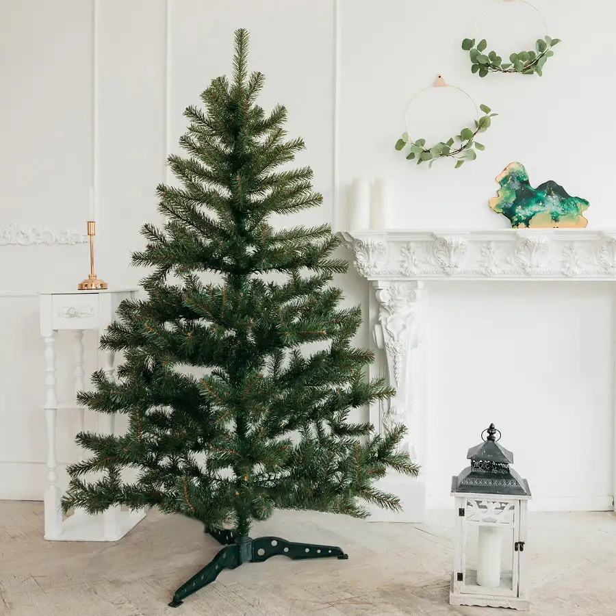 Відмінний бюджетний варіант для прикраси будинку головним атрибутом Нового року і Різдва. Для виготовлення хвої використовується полімерна плівка зеленого кольору, а серединка гілки –коричневого, як у живої ялинки. Не має хімічного запаху.