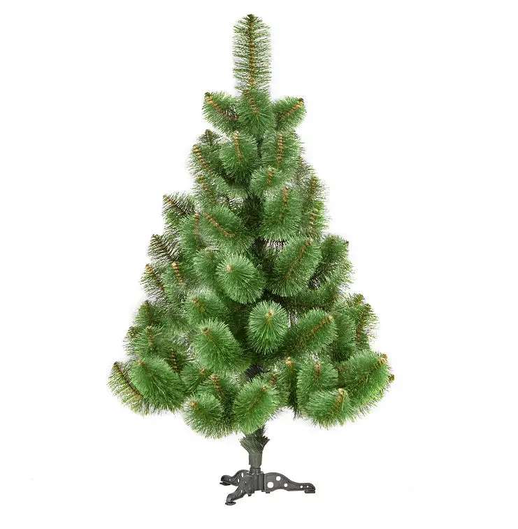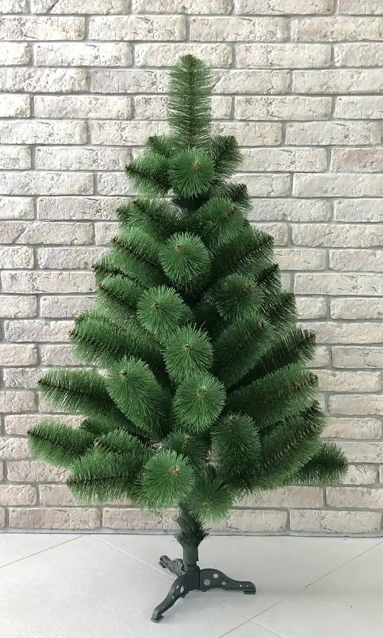 Густа хвоя природного зеленого кольору прекрасно вливається в будь-який інтер'єр і є чудовою прикрасою новорічного свята в кожному будинку, офісі, школі, садку і будь-якому іншому приміщенні. Модель з легкістю встановлюється, стовбур розбірний, одна половинка зі штирем входить в трубку. Конструкція: сталевий стовбур, на якому кріпляться гілки з такою ж дроту. Треба просто розпрямити гілки вставити стовбур дерева в ніжки пластикової підставки і розвісити іграшки. Підставка стійка, сосна не перекидаються, навіть коли щедро прикрашена іграшками і мішурою.