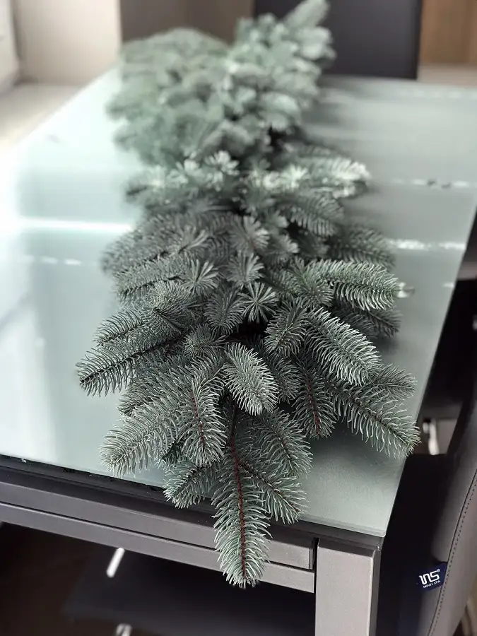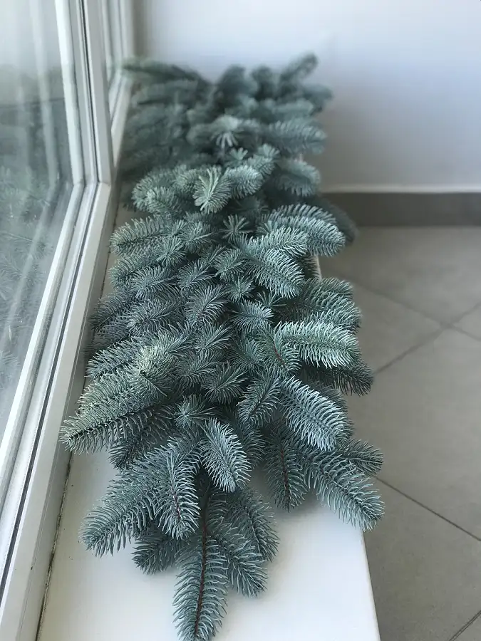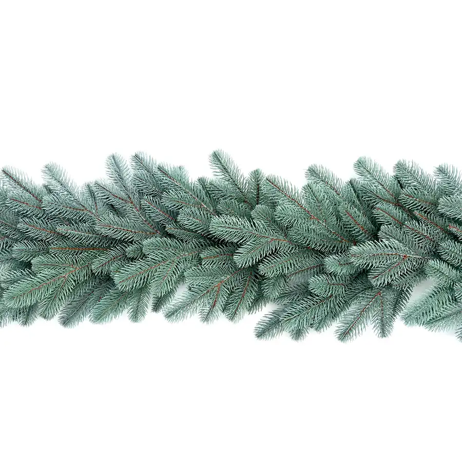 Хвойна гірлянда виготовлена шляхом переплетення штучних гілочок ялинки. Всі гілки і голочки - 100% литі, вони виглядають, як хвоя живої ялинки, але м'якші і не колючі.