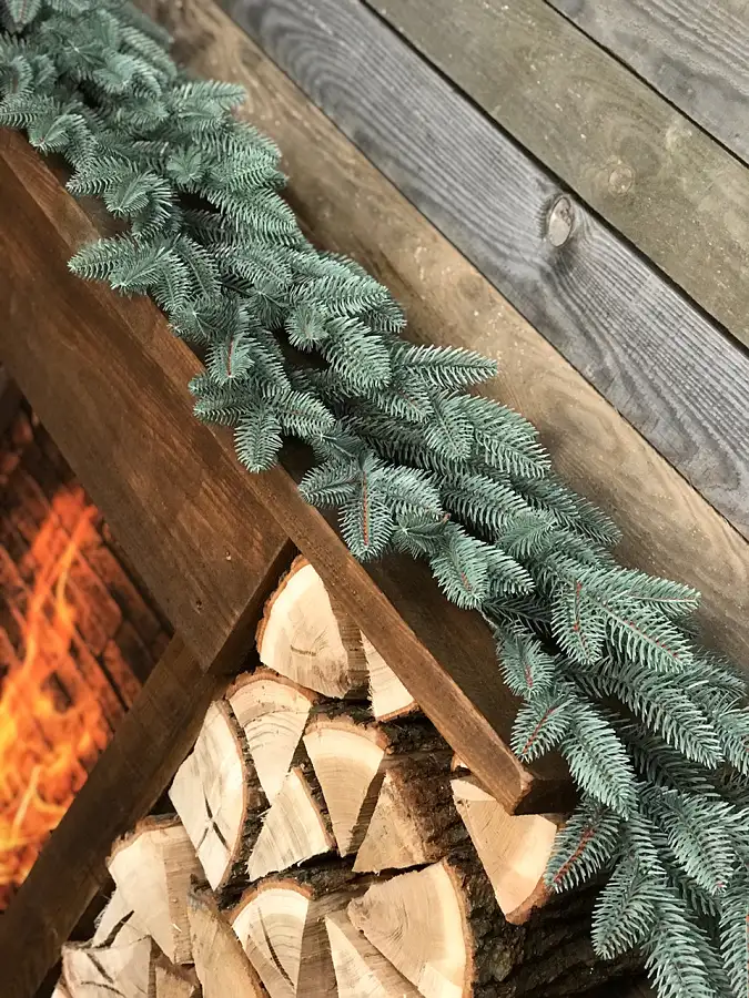 Хвойна гірлянда виготовлена шляхом переплетення штучних гілочок ялинки. Всі гілки і голочки - 100% литі, вони виглядають, як хвоя живої ялинки, але м'якші і не колючі.