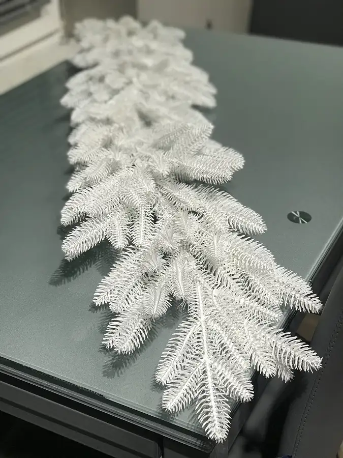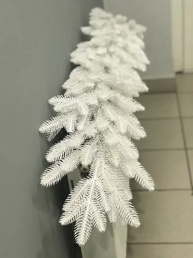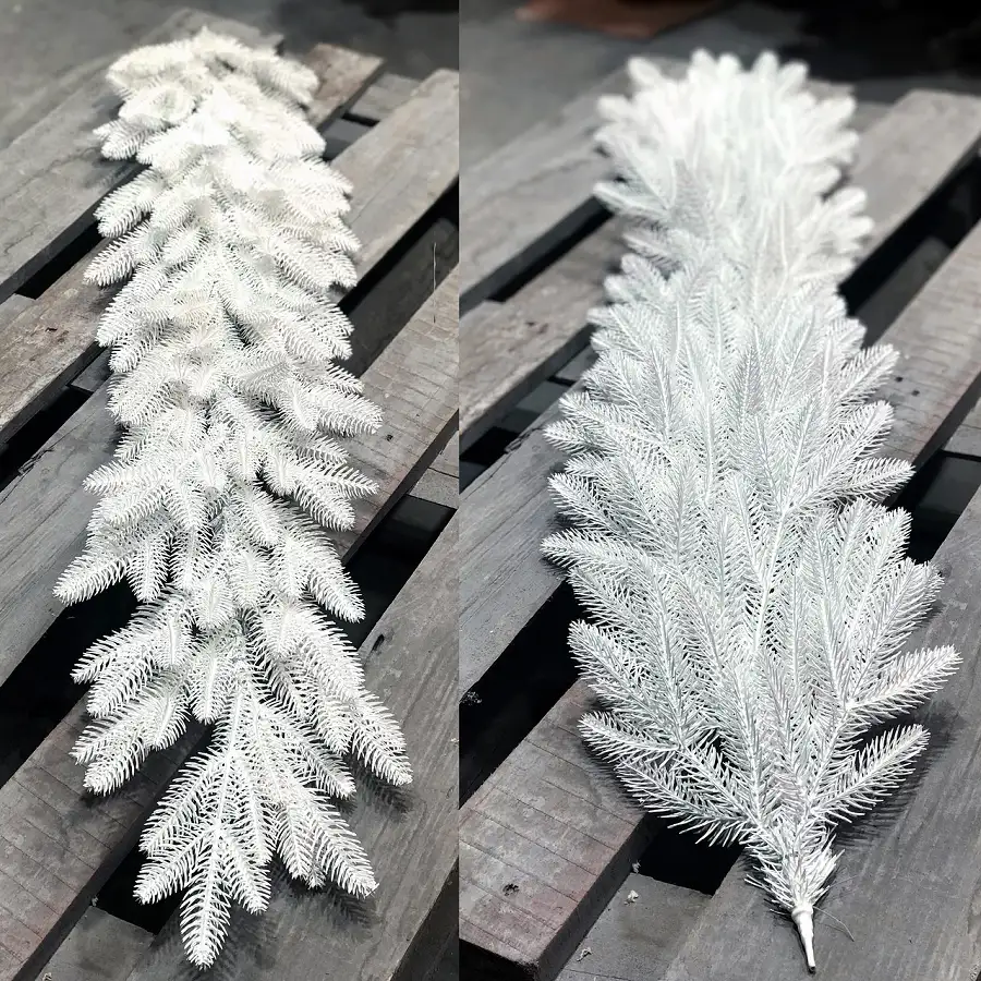 Хвойна гірлянда виготовлена шляхом переплетення штучних гілочок ялинки. Всі гілки і голочки - 100% литі, вони виглядають, як хвоя живої ялинки, але м'якші і не колючі.