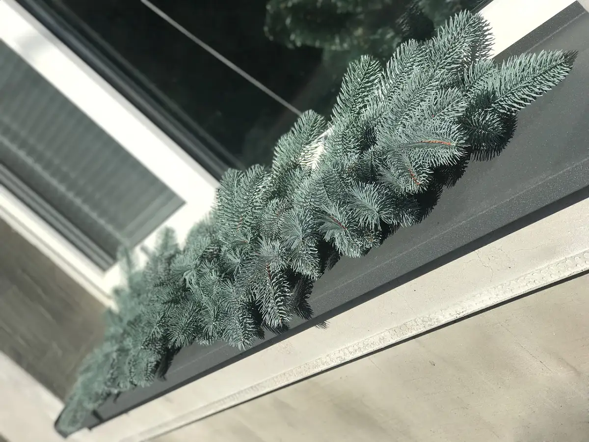 Хвойна гірлянда виготовлена шляхом переплетення штучних гілочок ялинки. Всі гілки і голочки - 100% литі, вони виглядають, як хвоя живої ялинки, але м'якші і не колючі.