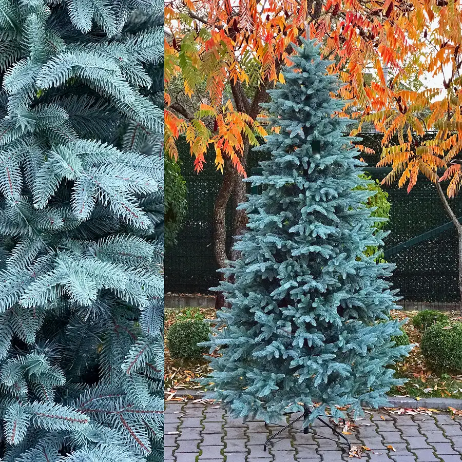 Відчуйте магію святкової атмосфери зі штучною ялинкою Classic Mix висотою 260 см. Завдяки сучасній технології литої хвої, ця ялинка виглядає надзвичайно реалістично і майже не відрізняється від живого дерева. Її витончені гілки з гострими кінчиками, форма яких нагадує справжню лісову ялинку, мають елегантний сіро-блакитний відтінок, що створює атмосферу зимової казки у вашому домі. Реалістична форма крони забезпечує об'ємний 3D ефект, що додає святковій атмосфері особливий затишок.