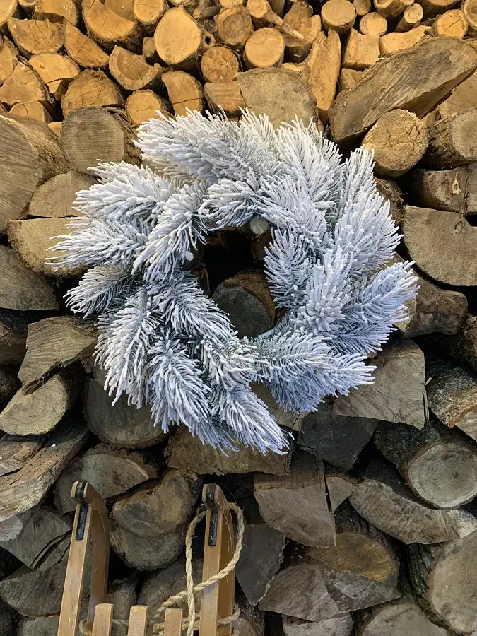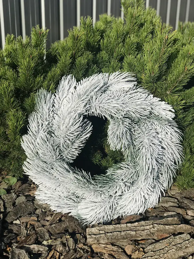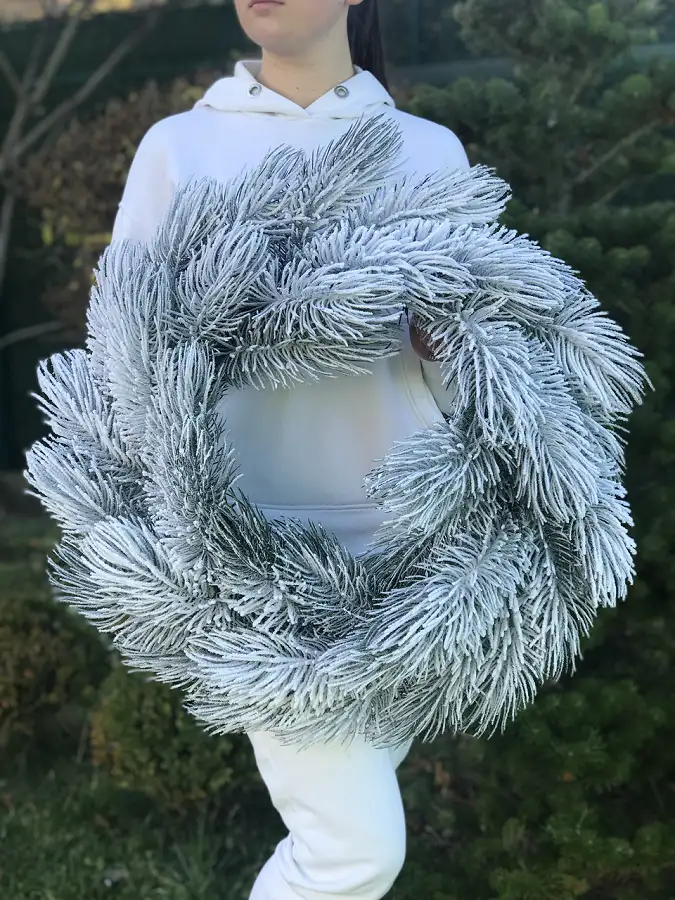 Оберіть цей вінок хвойний "Сосна литий" засніжений, щоб створити неповторну атмосферу святкування Різдва та Нового Року у вашому будинку або офісі.