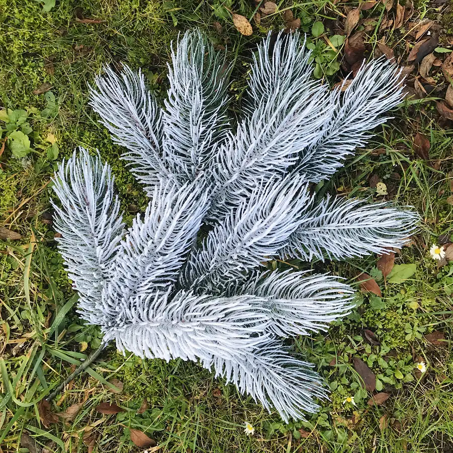 Хвоя виготовлена зі 100% литого м'якого пластику - поліетилену, її голочки довгі та об'ємні, як у живої сосни. Вони м'які та приємні на дотик, не колються і не обсипаються, що робить використання цієї гілки безпечним та комфортним.