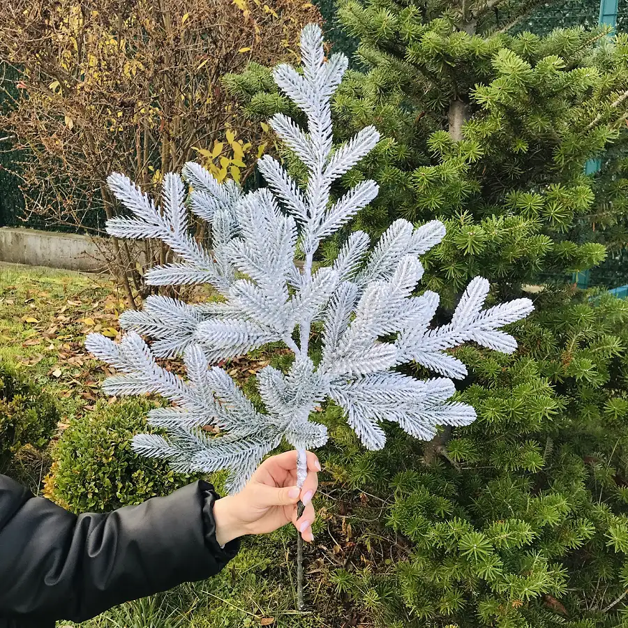 Хвоя виготовлена зі 100% литого м'якого пластику - поліетилену, її голочки м'які та приємні на дотик, не колються і не обсипаються, що робить використання цієї гілки безпечним та комфортним.