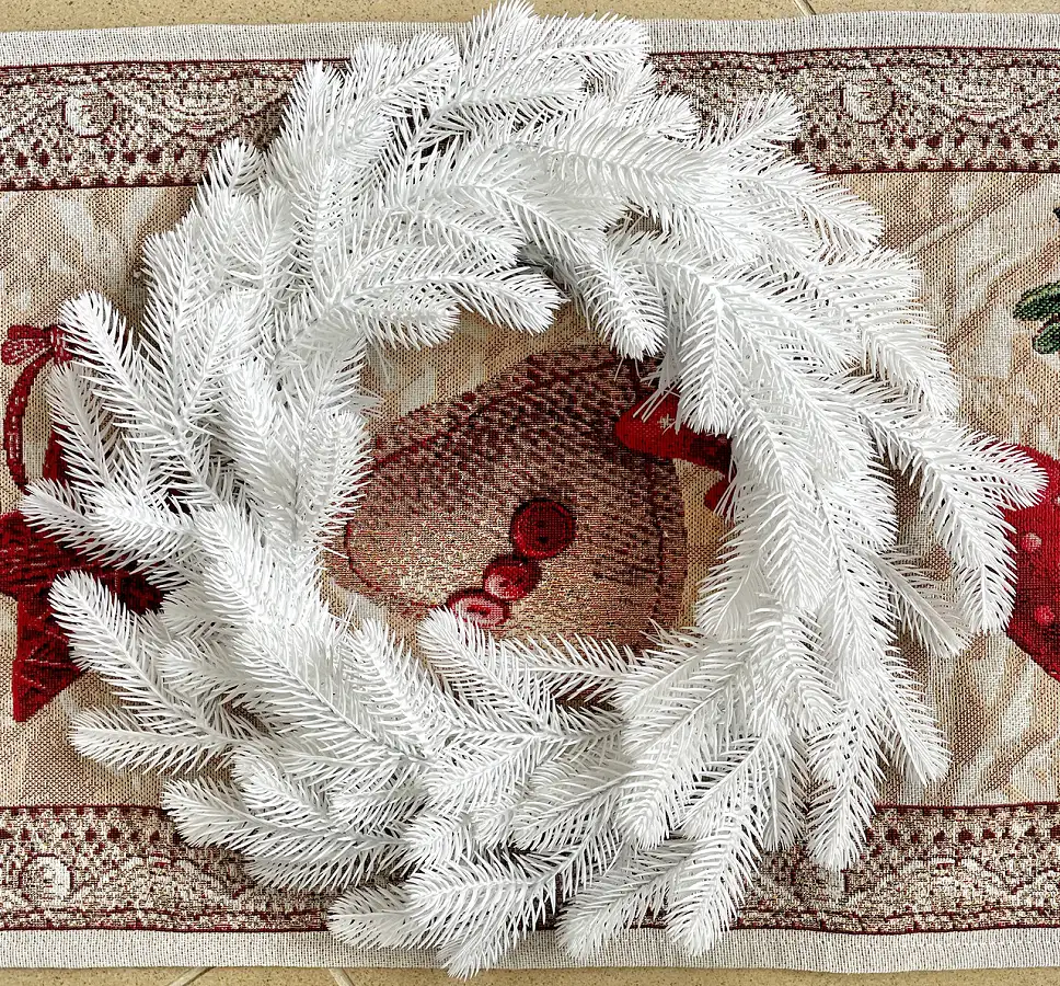 Цей вінок новорічний різдвяний Traditional з литої хвої має діаметр 40 см і виконаний в білому кольорі. Він стане відмінним прикрасою для вашого дому на святковий період. Вінок виготовлений з якісних матеріалів, що забезпечує його довговічність і якість. Обов'язково прикрасить вашу кімнату та створить атмосферу свята.