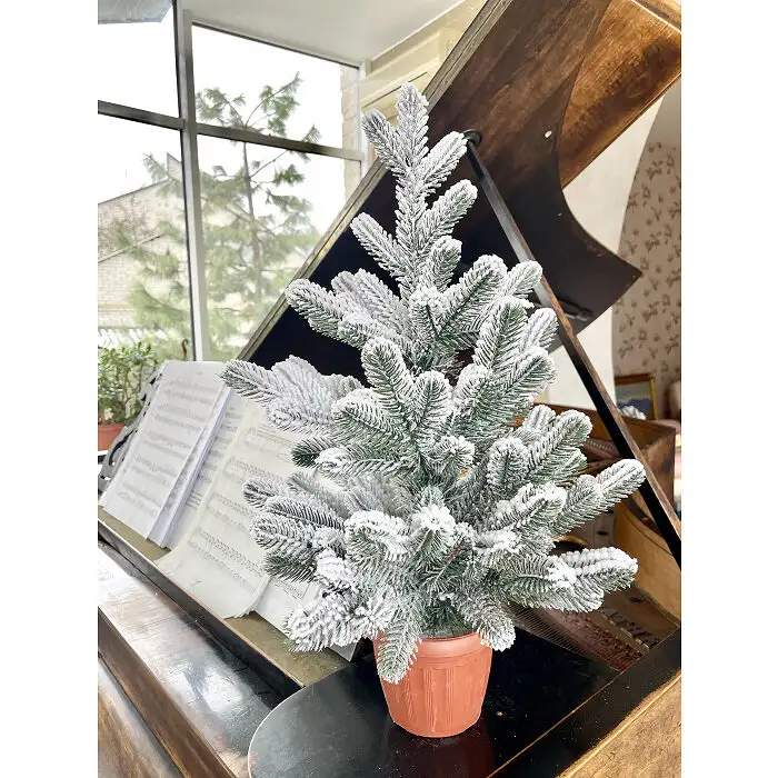 Ця унікальна ялинка має густу конічну крону, схожу на конус, з вершиною, що спрямована вгору, і гілками, що ростуть від стовбура до вершини рослини, створюючи витончену структуру стовбура. Використання високоякісного пластику та інноваційної технології лиття роблять хвою та гілки надзвичайно реалістичними.