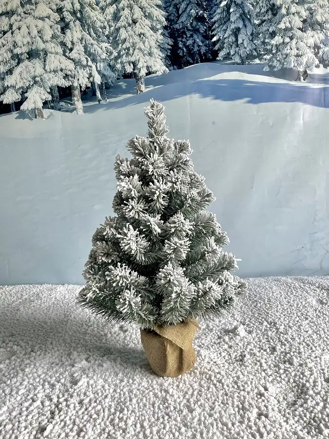 Ялинка Classic в мішковині 70 см засніжена стане прекрасним різдвяним декором для вашого дому або офісу. Завдяки своїй компактній висоті 70 см, вона легко поміститься на столі або полиці.