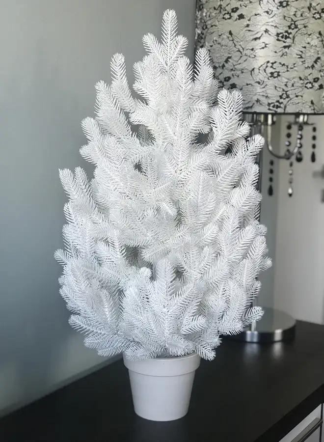 Ця ялинка виготовлена з високоякісних матеріалів і має біле фарбування, що надає їй елегантний вигляд. Її лита основа забезпечує стабільність, а також дозволяє легко розмістити її в будь-якому місці.