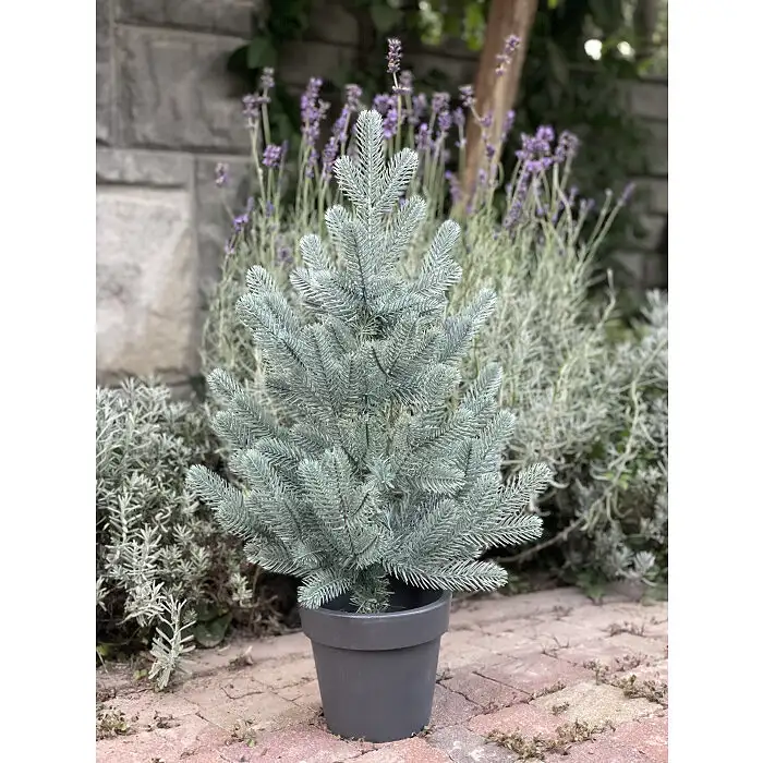 Ця унікальна ялинка має густу конічну крону, схожу на конус, з вершиною, що спрямована вгору, і гілками, що ростуть від стовбура до вершини рослини, створюючи витончену структуру стовбура. Використання високоякісного пластику та інноваційної технології лиття роблять хвою та гілки надзвичайно реалістичними.