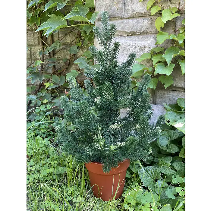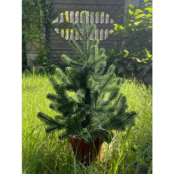 Ця унікальна ялинка має густу конічну крону, схожу на конус, з вершиною, що спрямована вгору, і гілками, що ростуть від стовбура до вершини рослини, створюючи витончену структуру стовбура. Використання високоякісного пластику та інноваційної технології лиття роблять хвою та гілки надзвичайно реалістичними.