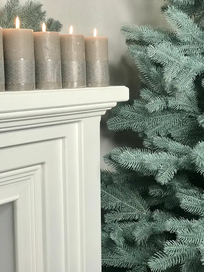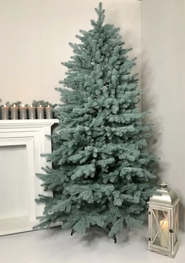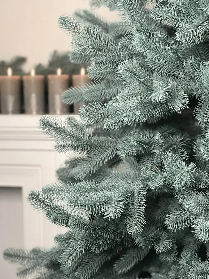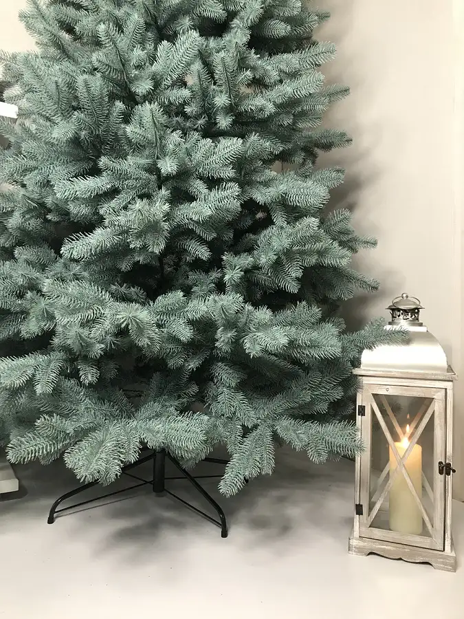 Усі гілочки ялинки виконані методом лиття, що надає їм реалістичного вигляду, наближаючи їх до справжніх лісових ялин. Густа, пишна крона вражає своєю красою, а блакитний відтінок гілочок додає дереву сучасного вигляду та унікального шарму.