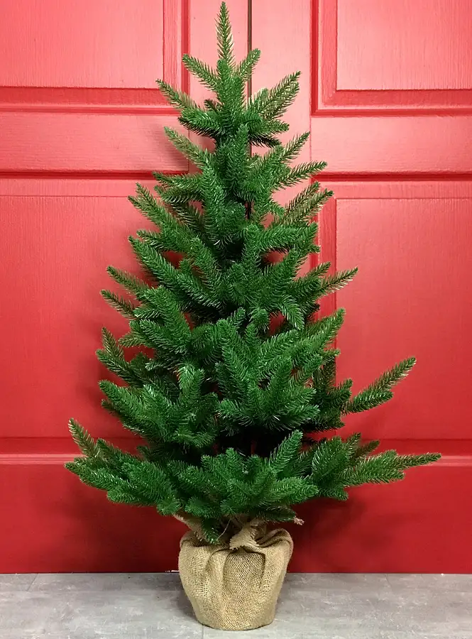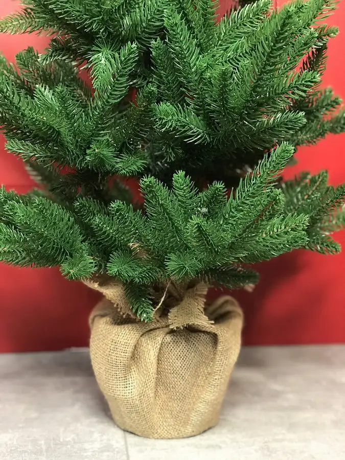Маленька штучна лита ялинка виглядає пишно та ошатно навіть без додаткових прикрас. Її литі голочки точно імітують хвою живої ялинки. Встановлена в горщик, прикрашений мішковиною, з обтяжувачем усередині - для захисту від перекидання.