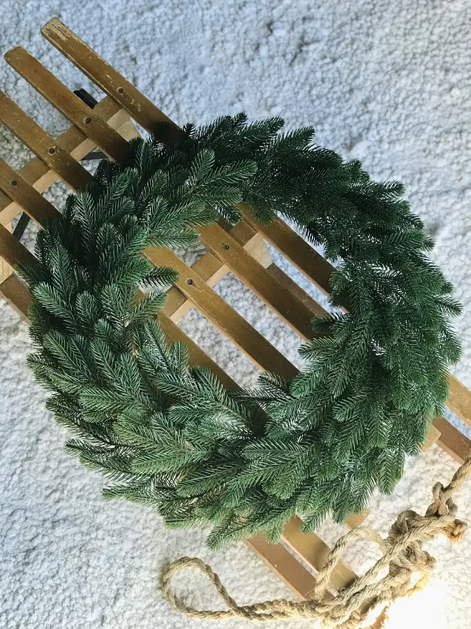 3. Матеріал: лита хвоя. Вінок виготовлений з високоякісної хвої, що додасть природнього вигляду вашому декору.