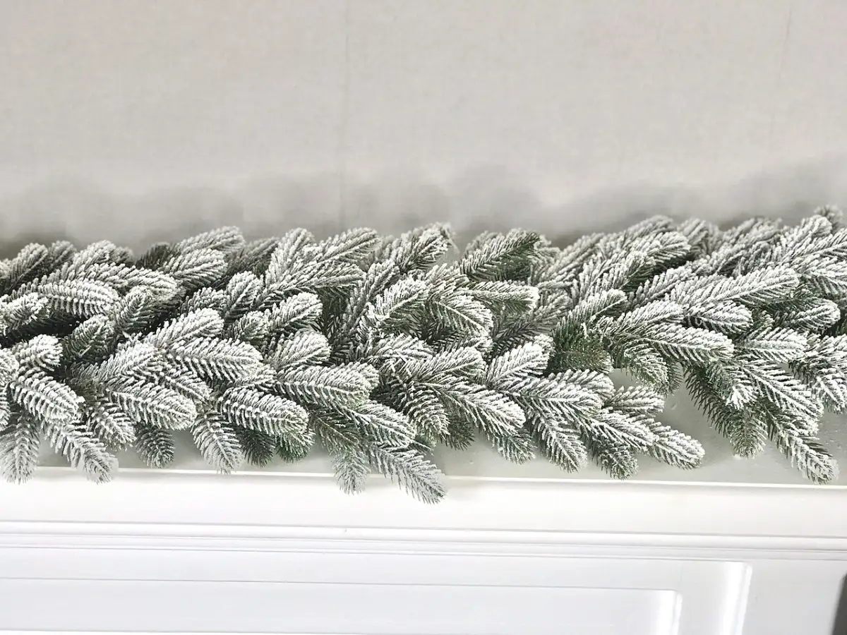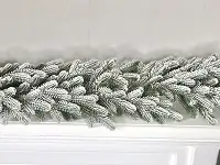 Хвойна гірлянда виготовлена з переплетених штучних ялинових гілочок. Всі гілки і голочки - 100% литі, вони виглядають, як хвоя живої ялинки, але м'якші і не колючі. Об'ємне густе напилення реалістично імітує сніг, який щойно впав на гілки пухнастими пластівцями. Матеріалом розпилення є натуральна бавовна, вона екологічна і не має запаху, безпечна для дітей і дорослих.