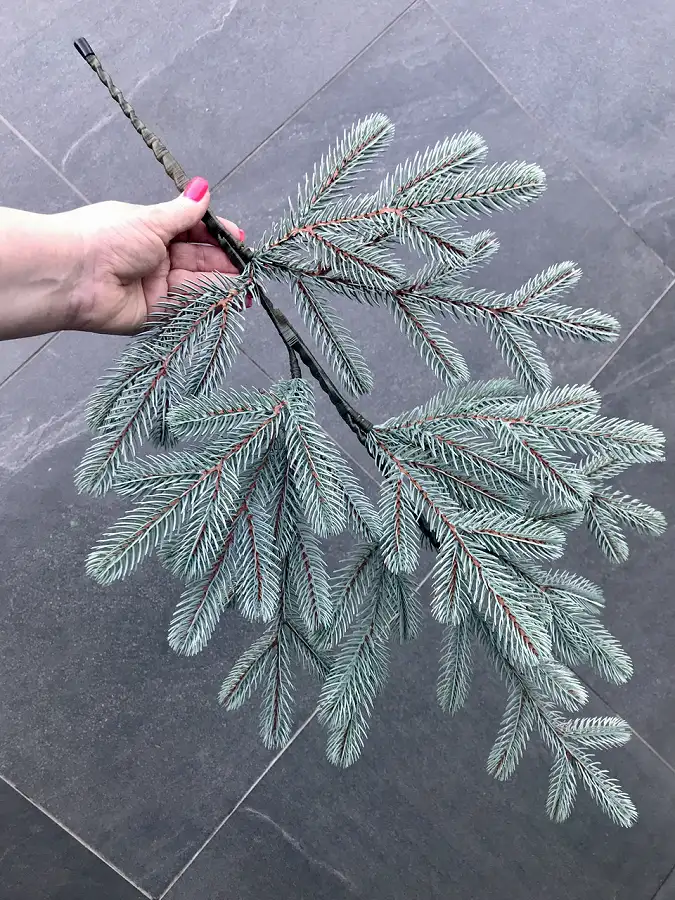 Гілка має довжину 60 см і складається з 12 частин литої хвої та гнучкого армованого каркаса, що забезпечує легке формування гілки за вашим бажанням.