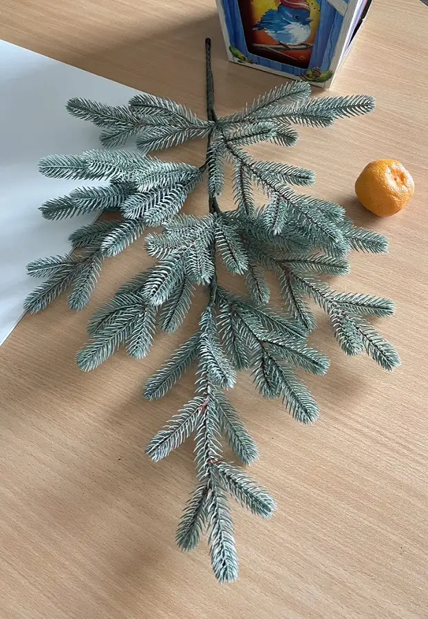 Хвоя виготовлена зі 100% литого м'якого пластику - поліетилену, її голочки об'ємні, як у живої ялинки. Вони м'які та приємні на дотик, не колються і не обсипаються, що робить використання цієї гілки безпечним та комфортним.