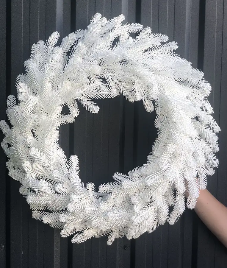Створіть чарівну атмосферу зимових свят з нашими різдвяними хвойними вінками Traditional! Гілки з 100% литої хвої переплітаються в красиву, об'ємну композицію, яка виглядає натурально, але при цьому безпечна на дотик. Вінки виготовлені з високоякісного полімеру що надає їм реалістичного вигляду та забезпечує довговічність. Ці білі вінки чудово підходять як для оформлення вашого дому, так і для святкового декорування громадських просторів.