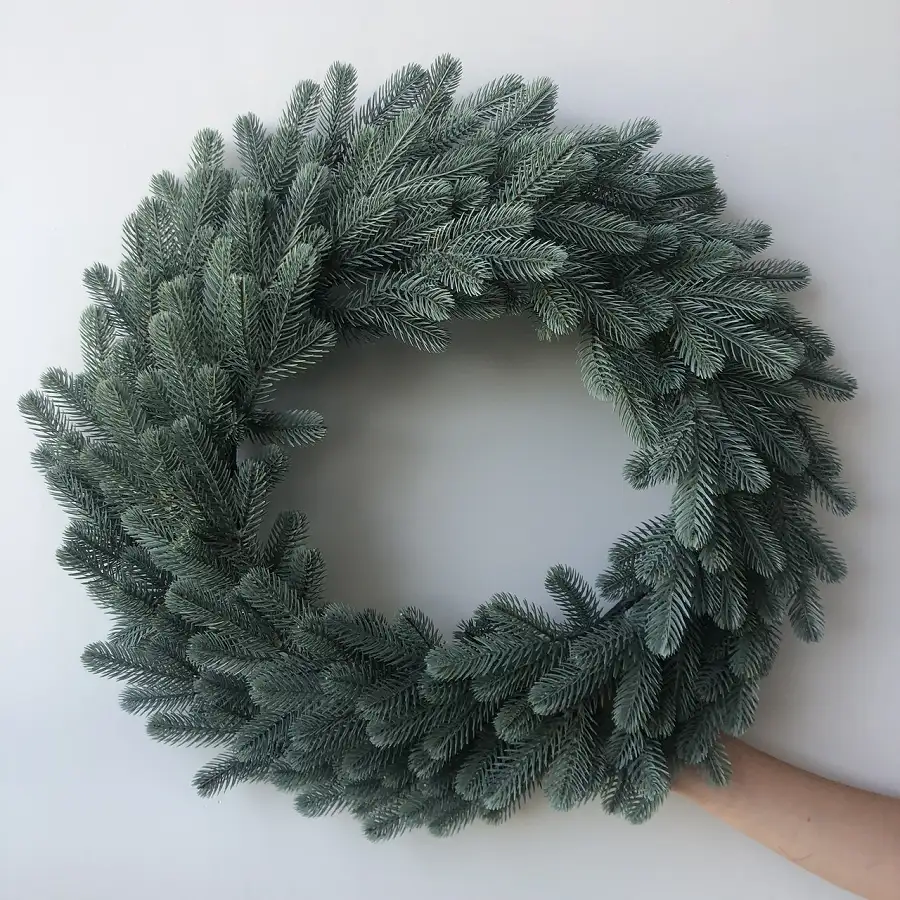 Створіть чарівну атмосферу зимових свят з нашими різдвяними хвойними вінками Traditional! Гілки з 100% литої хвої переплітаються в красиву, об'ємну композицію, яка виглядає натурально, але при цьому безпечна на дотик. Вінки виготовлені з високоякісного полімеру що надає їм реалістичного вигляду та забезпечує довговічність. Ці блакитні вінки чудово підходять як для оформлення вашого дому, так і для святкового декорування громадських просторів.