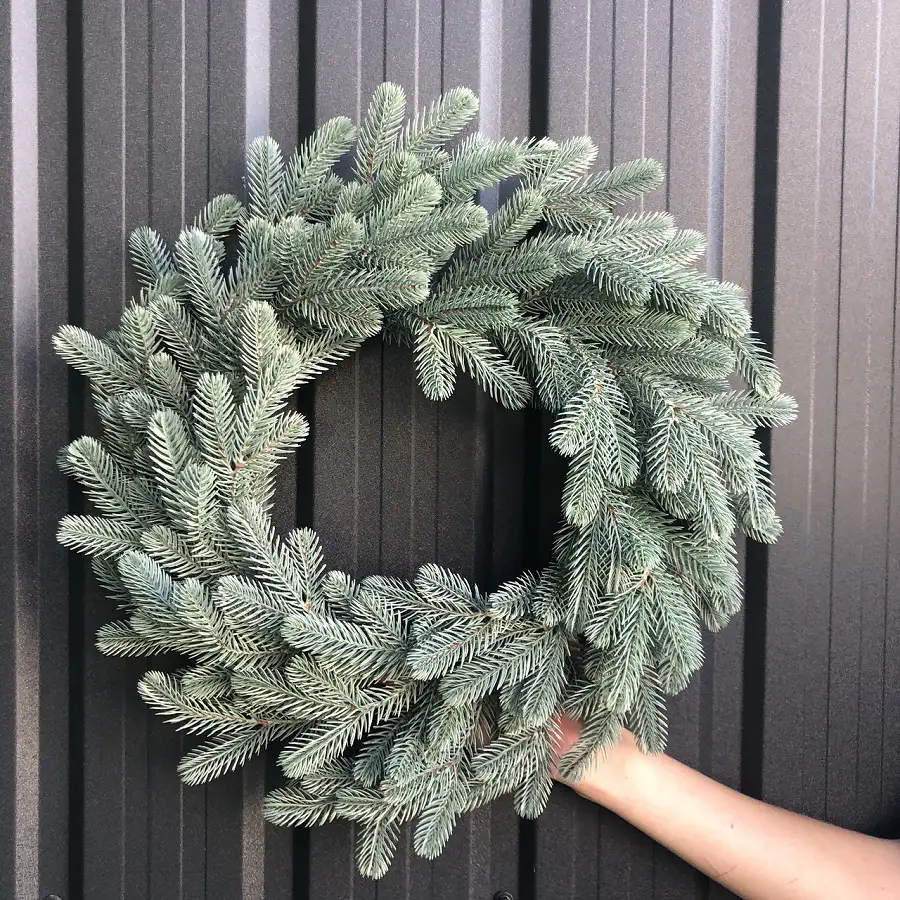 Ці блакитні різдвяні вінки чудово підходять як для оформлення вашого дому, так і для святкового декорування громадських просторів. Гілки штучної ялинки переплітаються в красиву, об'ємну композицію, яка виглядає натурально, але при цьому безпечна на дотик.
