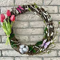 Цей віночок має розмір 45 см, що робить його ідеальним вибором для прикраси дверей або стін у вашій кімнаті. Він також може бути прекрасним подарунком для вашої родини або друзів на весняні свята.