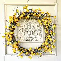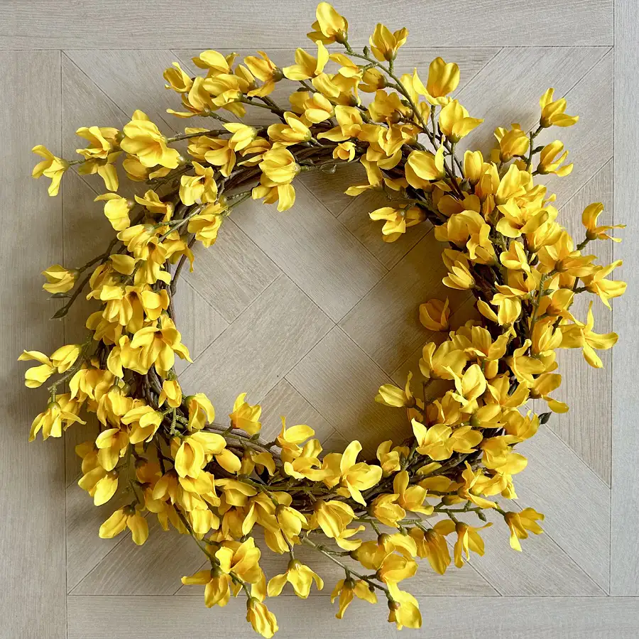Використовуйте його для створення вражаючого акценту на ваших вхідних дверях, де яскраві квіти форзиції стануть справжнім символом приходу весни. Цей віночок виглядає чудово в будь-якому інтер'єрі, створюючи яскравий фокус в будь-якому приміщенні.