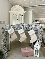 Гірлянда прекрасно виглядає на перилах сходів, дверних арках, каміні та шторах. Вона також може стати центральною прикрасою святкового столу або будь-якої іншої горизонтальної поверхні, створюючи атмосферу тепла та затишку.
