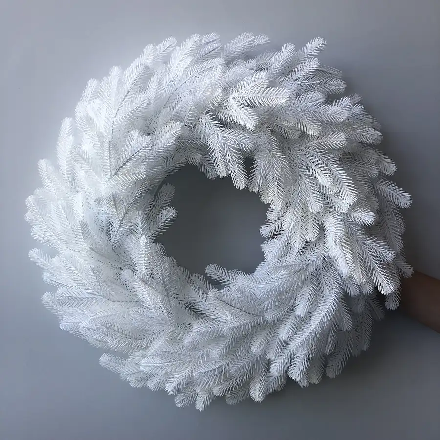 Новорічний декоративний вінок діаметром 60 см виготовлений з 100% литої хвої, яка надає йому природного вигляду. Гілки штучної ялинки переплітаються в красиву, пишну композицію, яка нагадує живу хвою, але є м'якою і безпечною на дотик. Вінок поставляється без декору, що дозволяє вам самостійно прикрасити його відповідно до власного стилю.