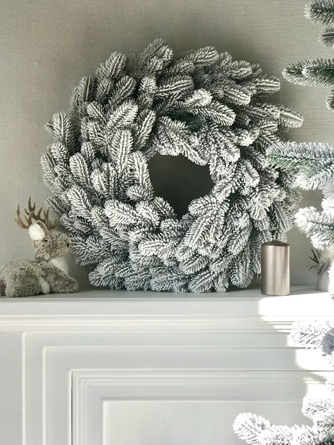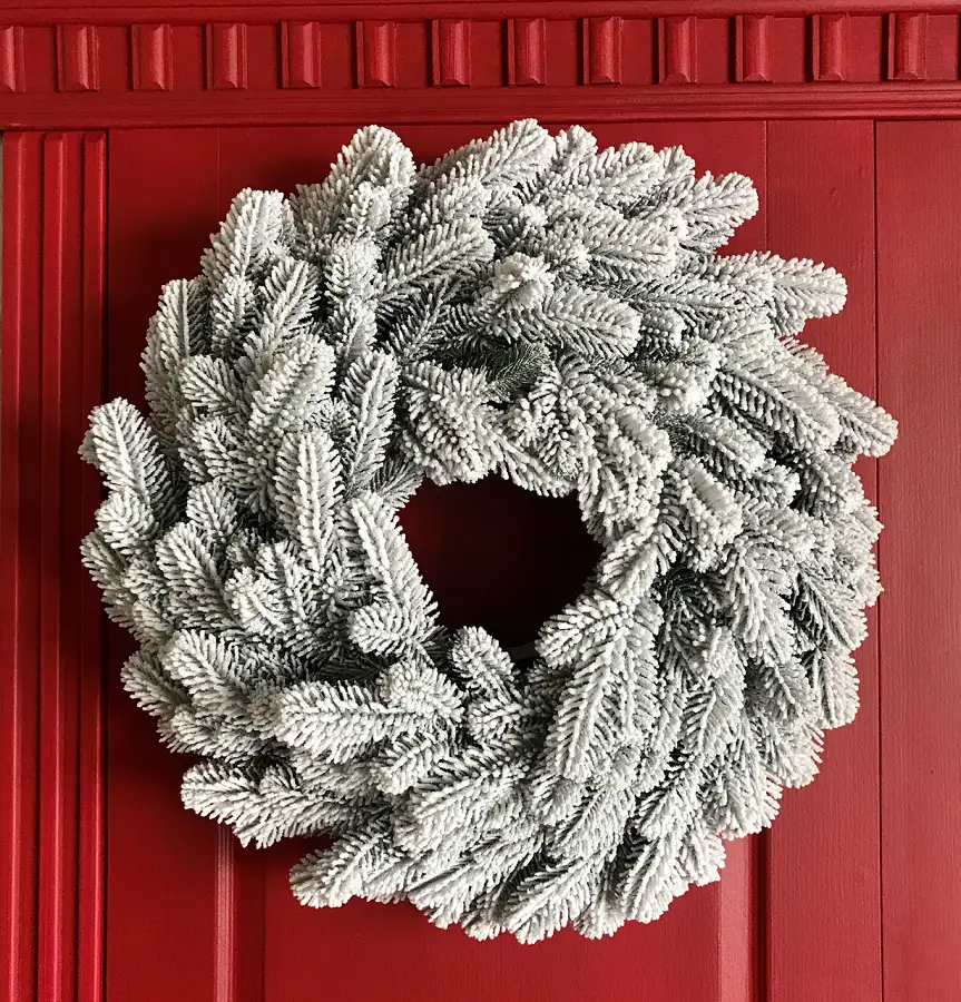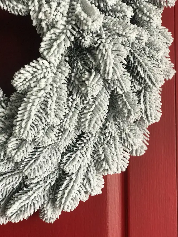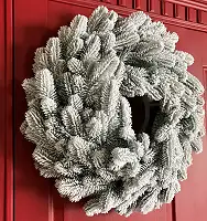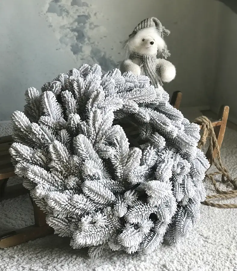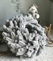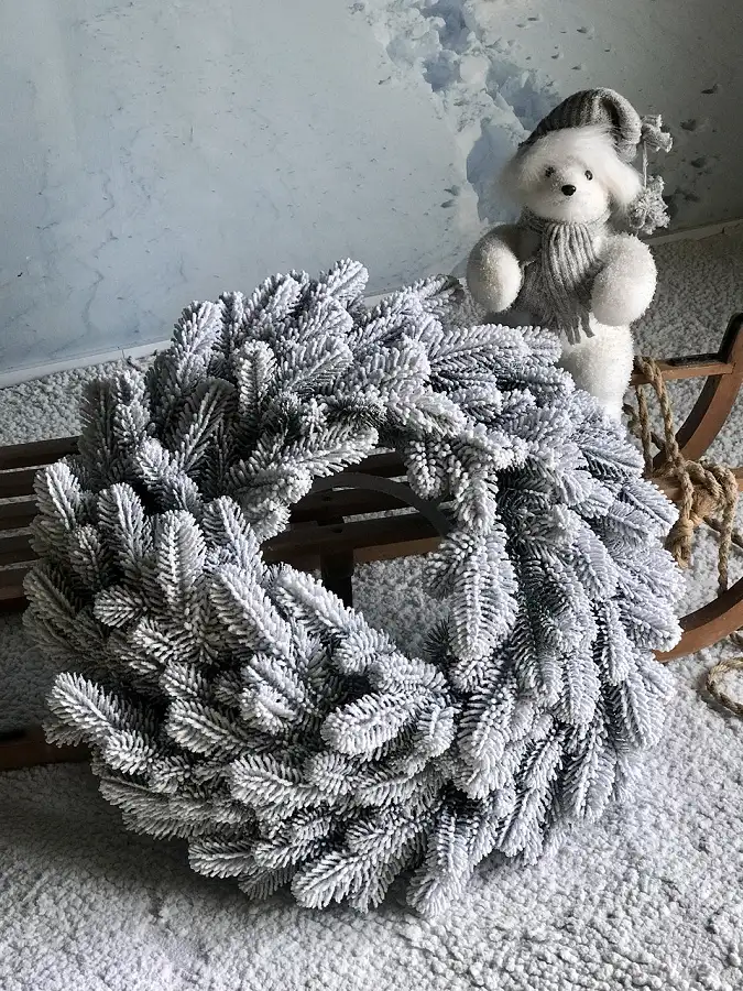 - Засніжена хвоя надає вінку реалістичний вигляд, що створює святкову атмосферу;