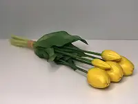 Цей товар - тюльпани штучні латексні жовті, букет із 5 бутонів Real Touch, ідеально підходить для декору та як подарунок.