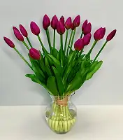 Даний букет штучних латексних тюльпанів фіолетового кольору стане чудовим подарунком або прикрасою для вашого будинку. Відтінки квітів створюють натуральний вигляд, а матеріал Real Touch надає їм неймовірно реалістичний вигляд.