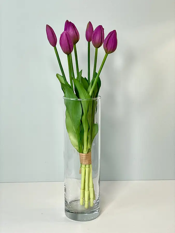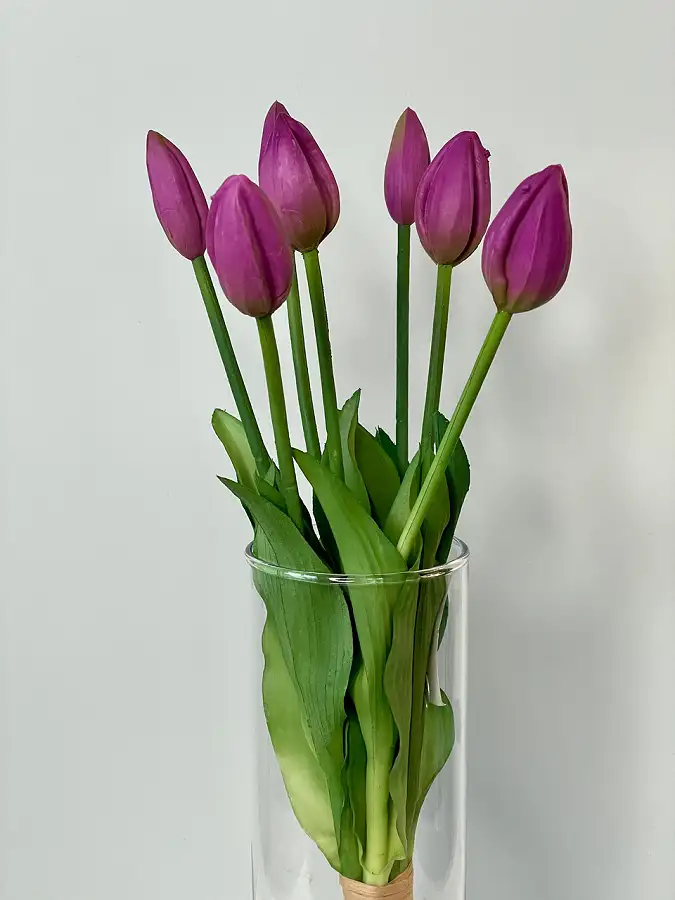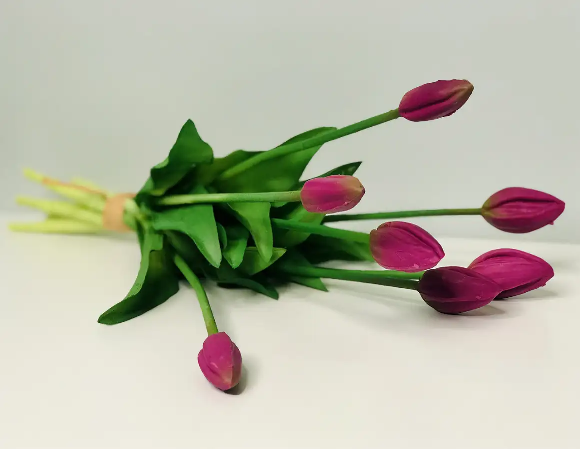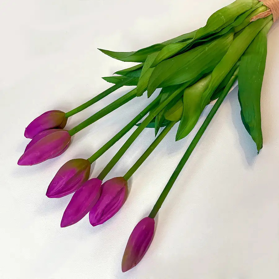 Букет штучних латексних тюльпанів із закритими бутонами – це вишукана весняна композиція, що стане чудовим доповненням до інтер'єру та стильним подарунком. Завдяки реалістичному вигляду, ніжній текстурі та ефекту Real Touch, ці квіти виглядають і відчуваються майже як справжні.