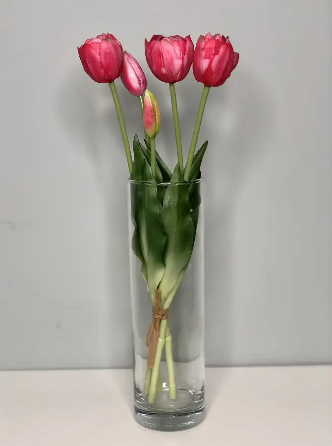 Переваги використання штучних тюльпанів латексних махрових, таких як цей яскраво-рожевий букет з 5 квіток Real Touch, неперечисленні. Ці штучні квіти виглядають надзвичайно реалістично і при цьому не вимагають догляду, як природні. Вони залишаються завжди свіжими і барвистими, не втрачаючи краси з часом.