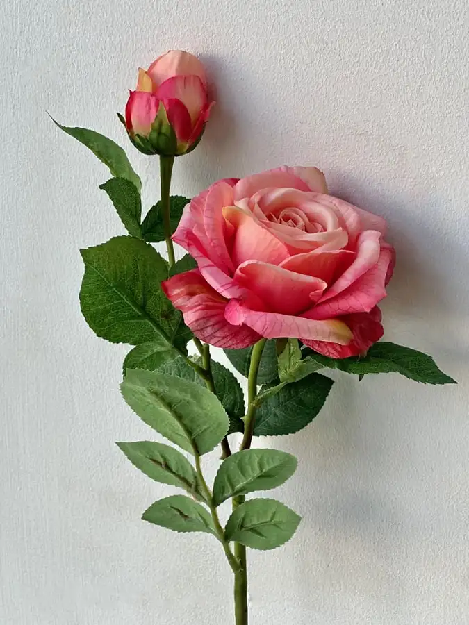 Штучна рожева троянда Deluxe на стеблі - це вишуканий і елегантний елемент декору для будь-якого приміщення. Завдяки реалістичному вигляду і висоті 65 см, ця гілка з латексу Real Touch приверне увагу і створить атмосферу затишку.