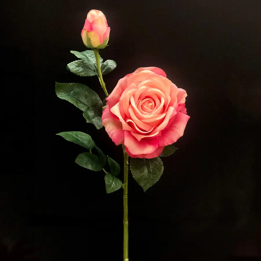 Купівля штучної рожевої троянди Deluxe на стеблі у нашому магазині має свої переваги. Ця реалістична гілка довжиною 65 см виготовлена з високоякісного латексу Real Touch, що надає квітці натуральний вигляд і дотик.