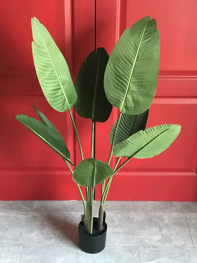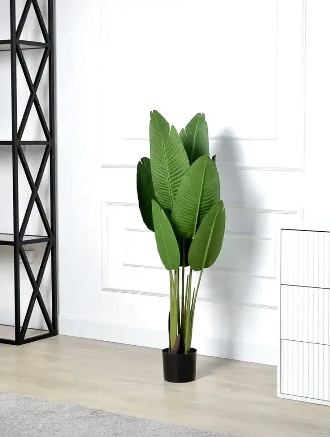 Штучне бананове дерево 120 см у горщику - чудовий вибір для тих, хто хоче створити затишок у своєму будинку чи офісі без необхідності дбати про живі рослини.