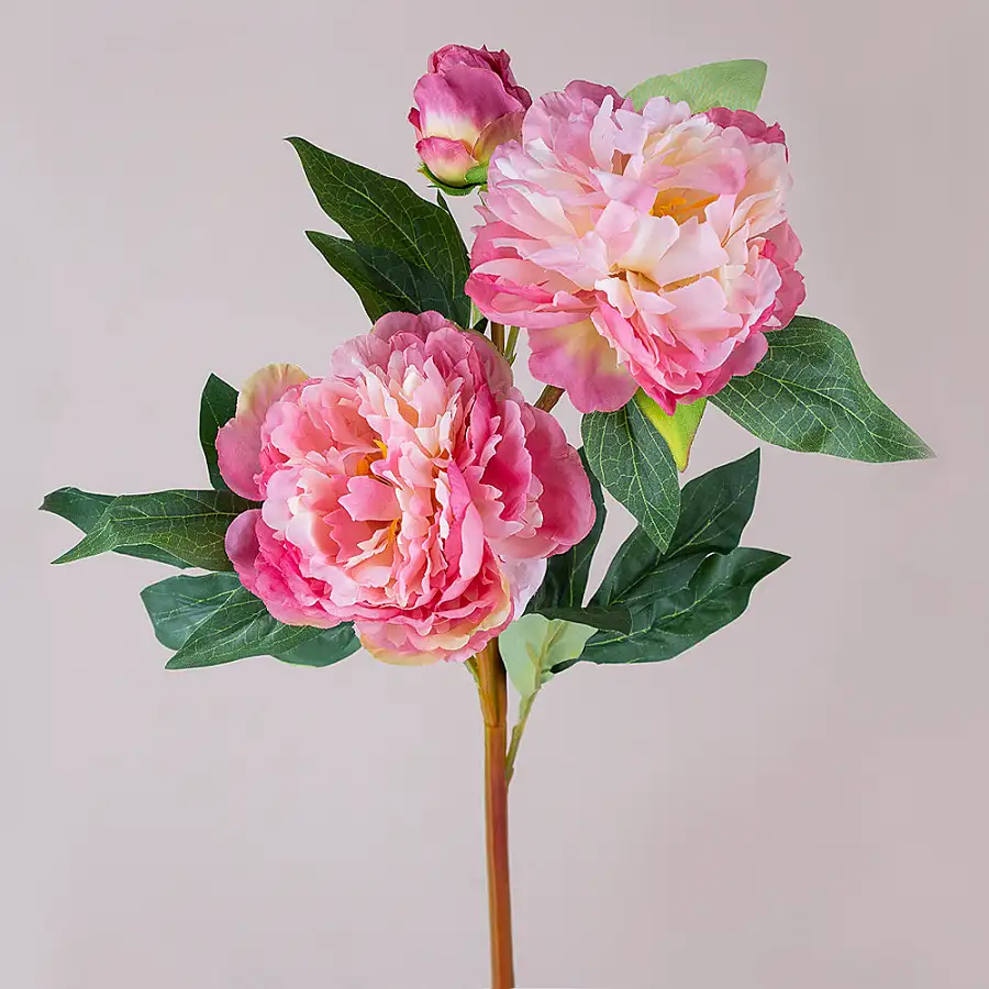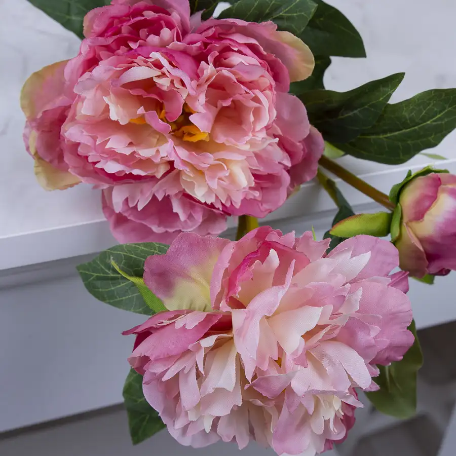 Півонія штучна рожева, потрійна гілка 75 см – реалістична квітка для декору і букетів