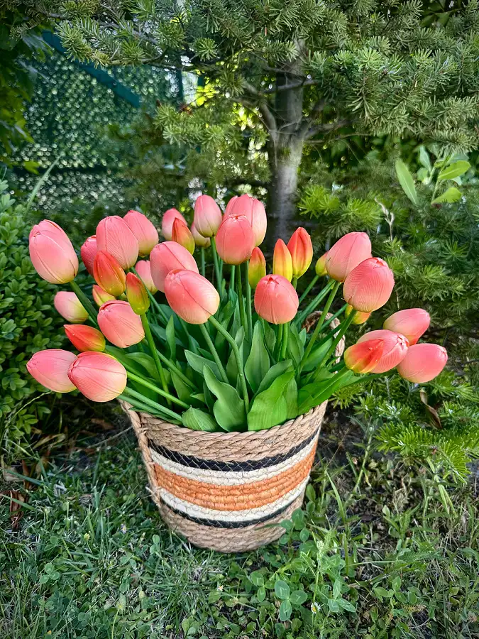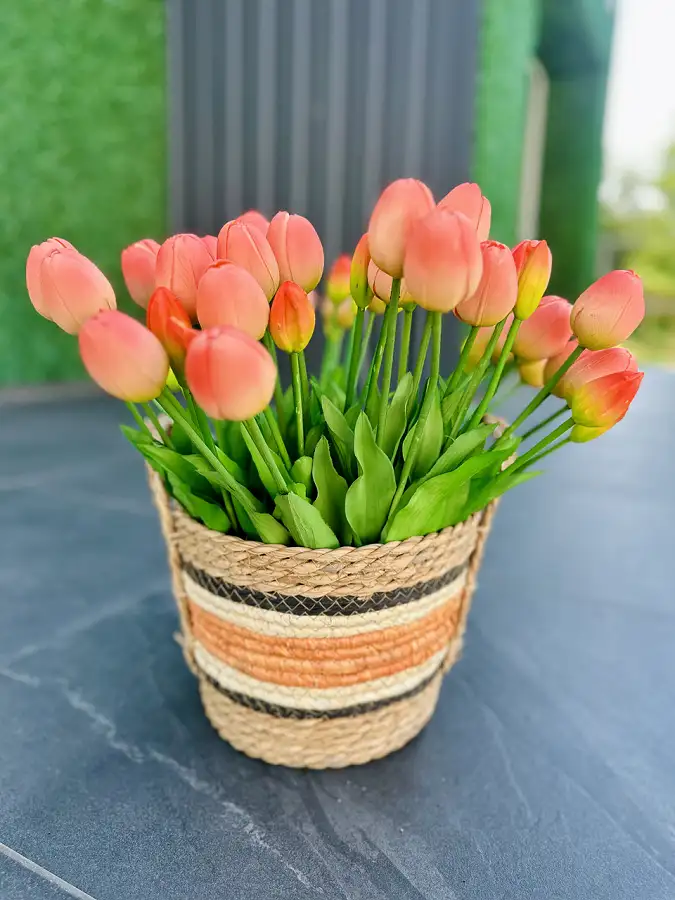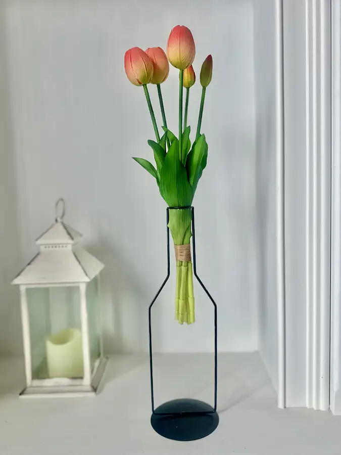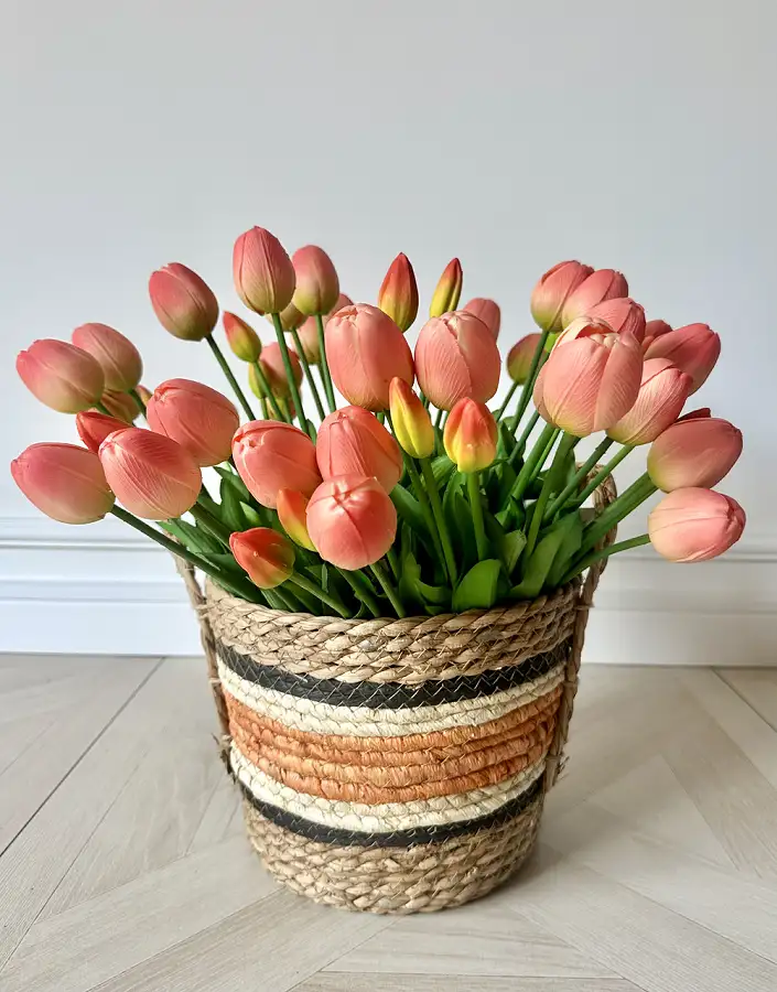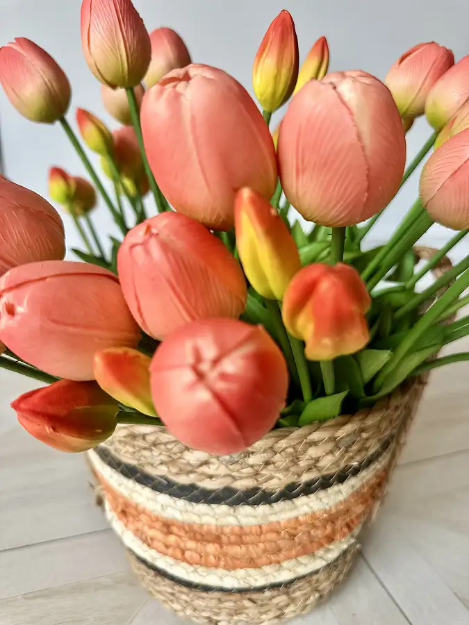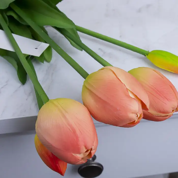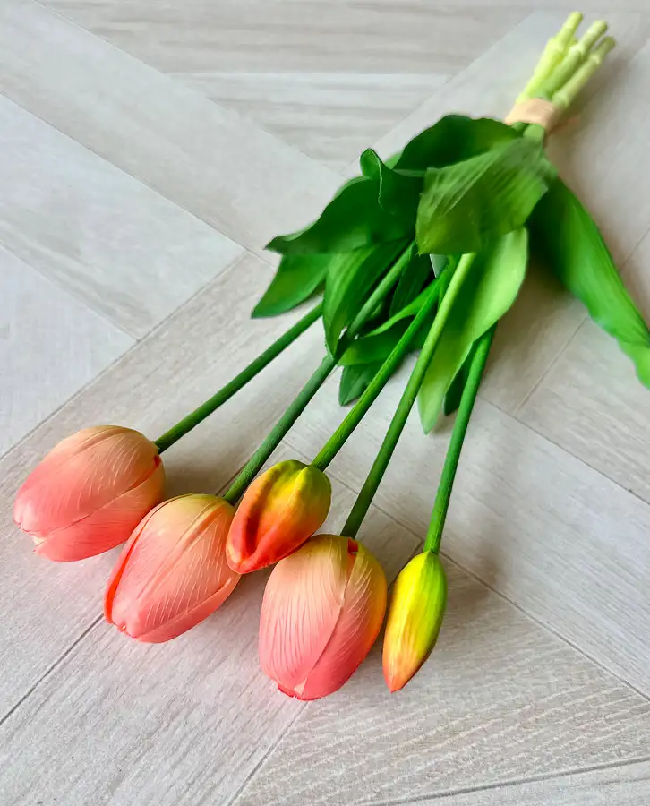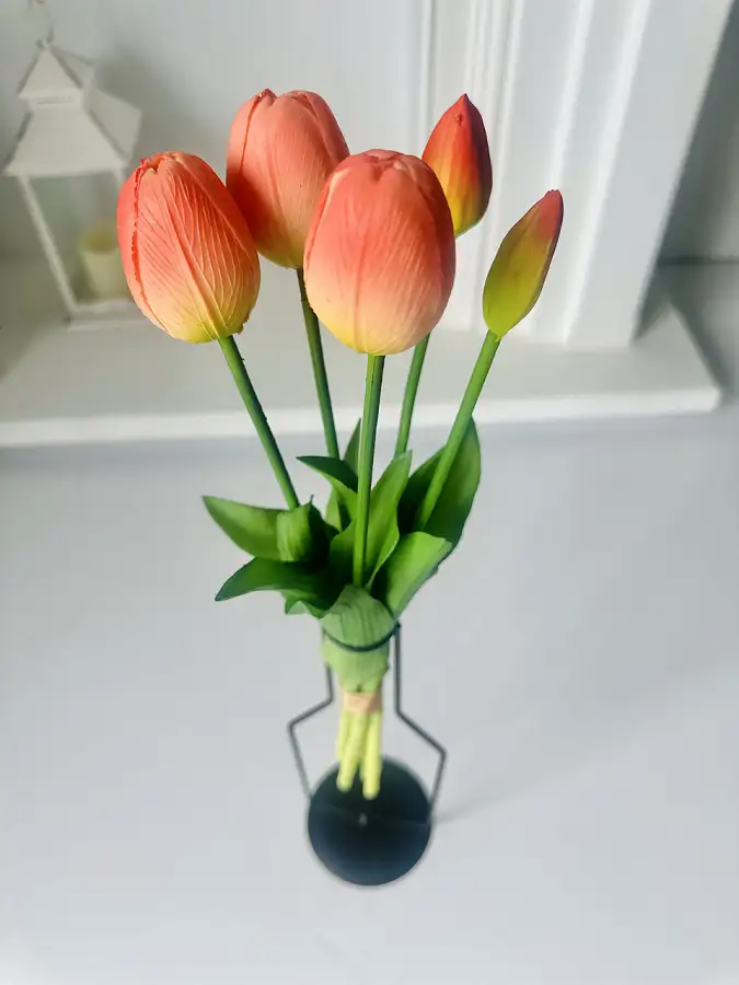 Цей тюльпан у вигляді "кульки" принесе весняний настрій у ваш дім або офіс. Він виготовлений з латексу в яскравому кораловому кольорі, що надає йому неймовірно живий вигляд. Цей букет штучних квітів стане прекрасним подарунком для коханої людини або просто чудовим доповненням до вашого інтер'єру.