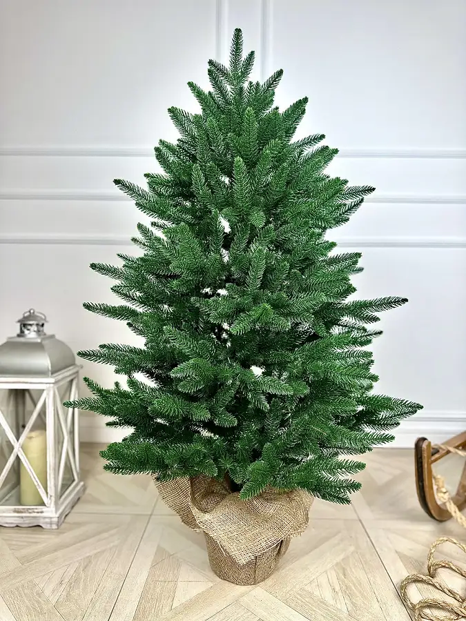 Штучна новорічна ялинка лита Classic, оздоблена мішковиною, 120 см, зелена