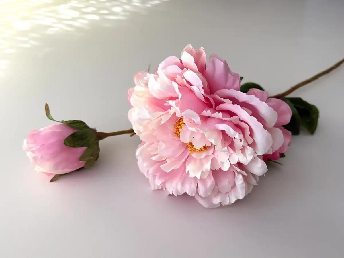 Не соромтеся експериментувати з розміщенням цієї декоративної гілки піона, вона чудово виглядатиме як самостійно, так і в поєднанні з іншими штучними квітами чи зеленим листям.